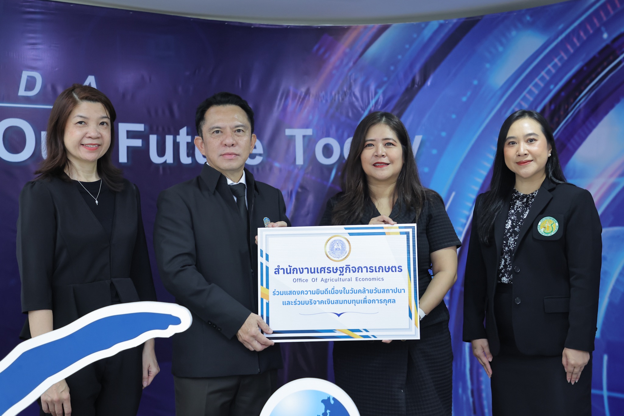วันที่ 31 ตุลาคม 2568 นางสาวจตุพร นนทศิริ ผู้อำนวยการส่วนภูมิสารสนเทศการเกษตร นักวิชาการสถิติชำนาญการพิเศษ สำนักงานเศรษฐกิจการเกษตร พร้อมด้วย นางมณีลักษณ์ พิริยะจิตตะ ผู้อำนวยการส่วนช่วยอำนวยการ สำนักงานเลขานุการกรม สำนักงานเศรษฐกิจการเกษตร ร่วมแสดงความยินดีวันคล้ายวันสถาปนาสำนักงานพัฒนาเทคโนโลยีอวกาศและภูมิสารสนเทศ (องค์การมหาชน) ครบรอบ 25 ปี โดยร่วมบริจาคเงินสมทบทุนมูลนิธิรามาธิบดี ณ ห้อง Imagineering Center ชั้น 6 และลานอเนกประสงค์ ชั้น 6 สทอภ. อาคารรัฐประศาสนภักดี (ทิศตะวันตก) ศูนย์ราชการเฉลิมพระเกียรติ 80 พรรษา 5 ธันวาคม 2250 กรุงเทพฯ